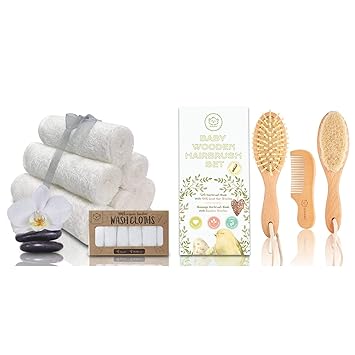 Amazon Com Baby Hair Brush Set And Organic Bamboo Washcloths Bundle Baby Grooming Care Bath Essentials For Newborn Babies And Toddlers Best For Delicate Skin Cradle Cap Face Towels Baby